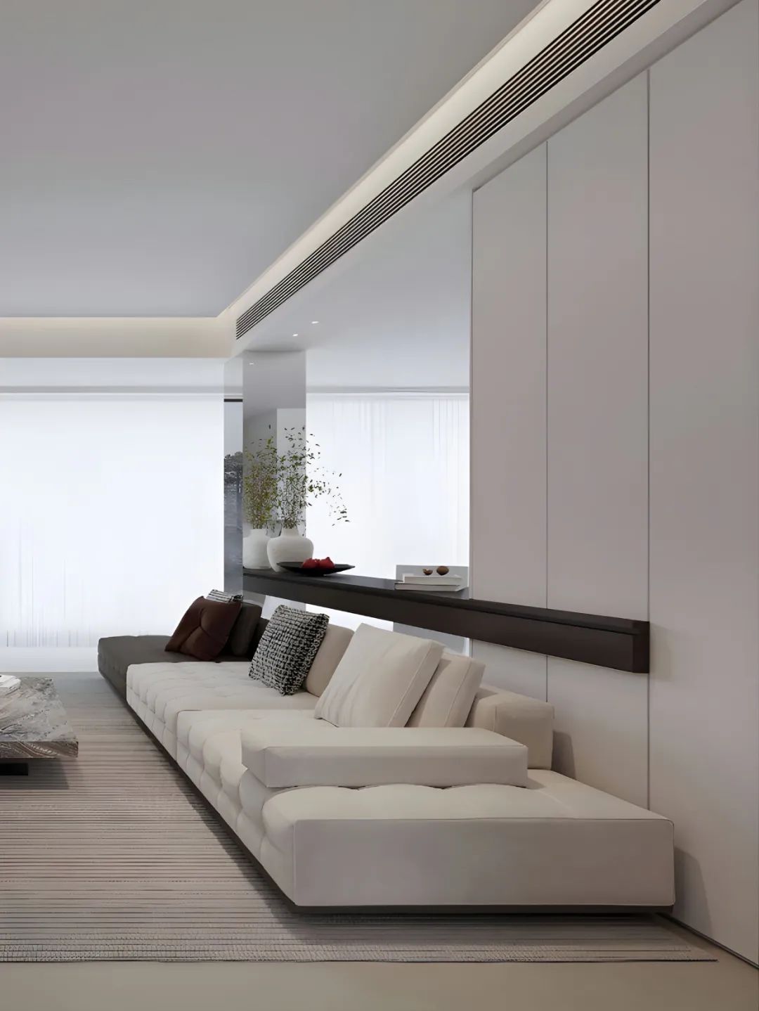 當(dāng)初決定裝修成極簡(jiǎn)風(fēng),真的是太明智了!沒(méi)有花里胡哨的裝飾,簡(jiǎn)單又大氣。客廳的大白墻,配上無(wú)主燈設(shè)計(jì),